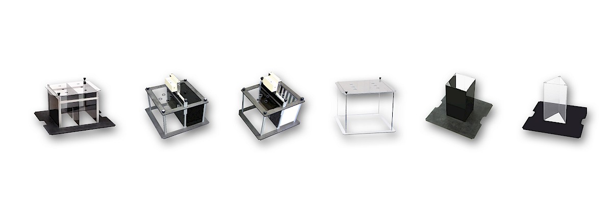 In accordance with the experimental requirements, each measuring unit can be equipped with a large variety of arenas, equipment and software modules. The movements of experimental animals are detected in three dimensions by high resolution IR light beams.
