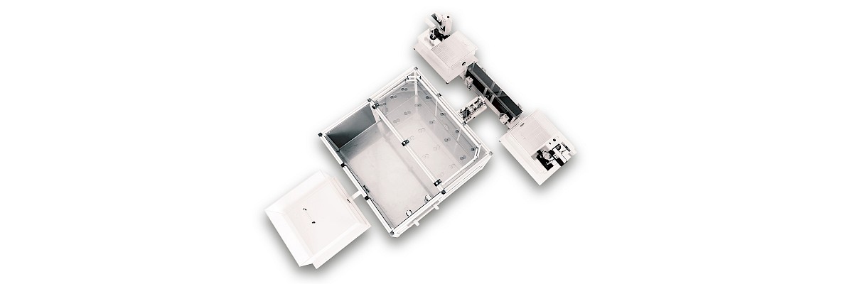 PhenoWorld setups are individually tailored to the customer’s needs including the choice and arrangement of components, as wells as the particular function. Center cages represent home cages for multiple animals – the center for social interaction. Center Cages may consist of a simple arena that can be equipped with PhenoMaster feeding and drinking modules, access control modules, shelters, nesting material, and other enrichment accessories. Alternatively, Center cages can be actual IntelliCages with integrated operant learning corners. In either configuration, the center cage is connected to one or more satellite arenas / cages via transition tubes, gates or stairways. Via RFID transponder technology, animal behavior can be tracked at defined strategic points in the setup, e.g. entry/exit points, operant corners.