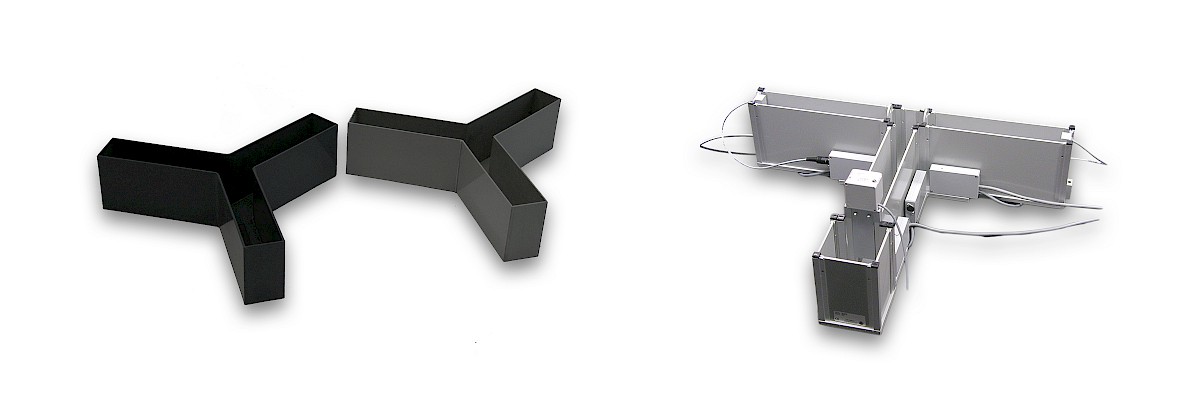 Each T-Maze consists of two choice arms and one start arm mounted at a square center – a start compartment is optional. Both choice arms are equipped with food cups with integrated infrared sensors – software-controlled pellet dispensers are available as an option. Manual doors are included – automatic doors are available on request. The T-Maze software package provides predefined standard paradigms. Choice accuracy is presented in a results table together with time-based parameters such as response latency.